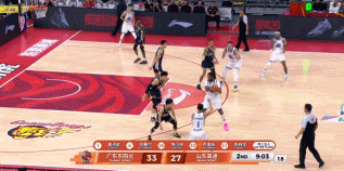 山东连追4分,关键时刻萨林杰王少杰送出2帽,萨林杰制造2罚,接下来萨姆纳也在转换中打进高难度2+1!帮助广东重新领先来到16分,但接下来广东队陷入了得分荒。