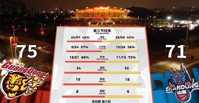 恭喜广东队拿下了6连胜,而这场鲁粤大战战况堪称惨烈,场上也是争议判罚不断,两队都相当不满,40分钟的比赛打了2小时才分出胜负,两队合计43犯44罚,广东赢在了第四节三分球回暖,全场广东三分合计30投12中,命中率40%。