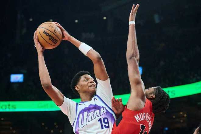 猛龙过去两场连输尼克斯与魔术遭遇2连败,爵士过去5场遭遇5连败。本场猛龙缺少珀尔特尔,爵士缺少凯斯勒、乔治、哈克莱斯、尼昂。首节双方持续紧咬比分缠斗,猛龙凭借团队攻势保持微弱领先优势,首节爵士25中8不足4成准星,其中三分13中4,马尔卡宁6+3与贝利5中0得到0分;猛龙23中9也不足4成准星,其中三分14中7表现出色,英格拉姆6中1仅得到2分与巴恩斯6分、马穆2记三分得到8分,首节结束猛龙28-23领先爵士。