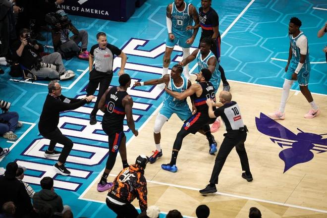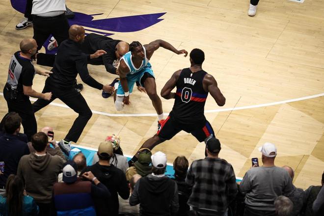 北京时间2月10日,NBA常规赛活塞客场对阵黄蜂,双方第三节爆发大规模冲突,杜伦、迪亚巴特、布里奇斯与斯图尔特4位球员被驱逐。活塞在坎宁安攻传结合表现引领下,逐步压制黄蜂扩大16分优势,黄蜂持续反扑追到个位数差距。活塞挡住黄蜂的顽强追分,最终活塞110-104赛季双杀终结黄蜂9连胜。
