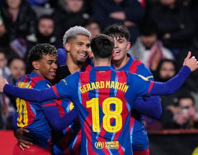 客场作战的巴塞罗那,靠着亚马尔和阿劳霍上下半场的进球,一度手握2球领先,但随后阿尔瓦塞特的反扑,也给巴萨造成了非常大的威胁,第84分钟主队的进球越位被吹,3分钟之后就利用角球扳回一城,好在余下的时间,巴萨没有再给对手机会,2-1晋级四强,在拿到西超杯冠军的同时,继续朝着国王杯、西甲和欧冠冠军发起冲击。
